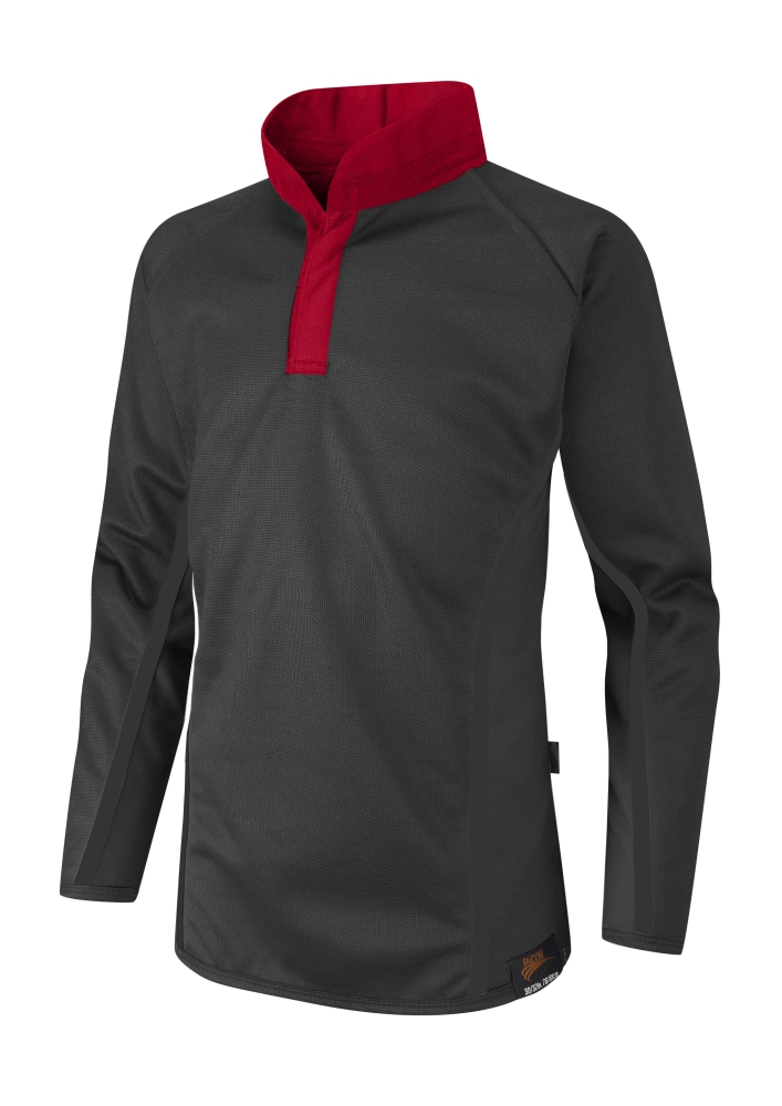 - Embroidered with school logo on red side