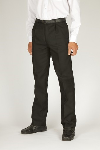 - Single pleat senior trousers with a fully lined waistband